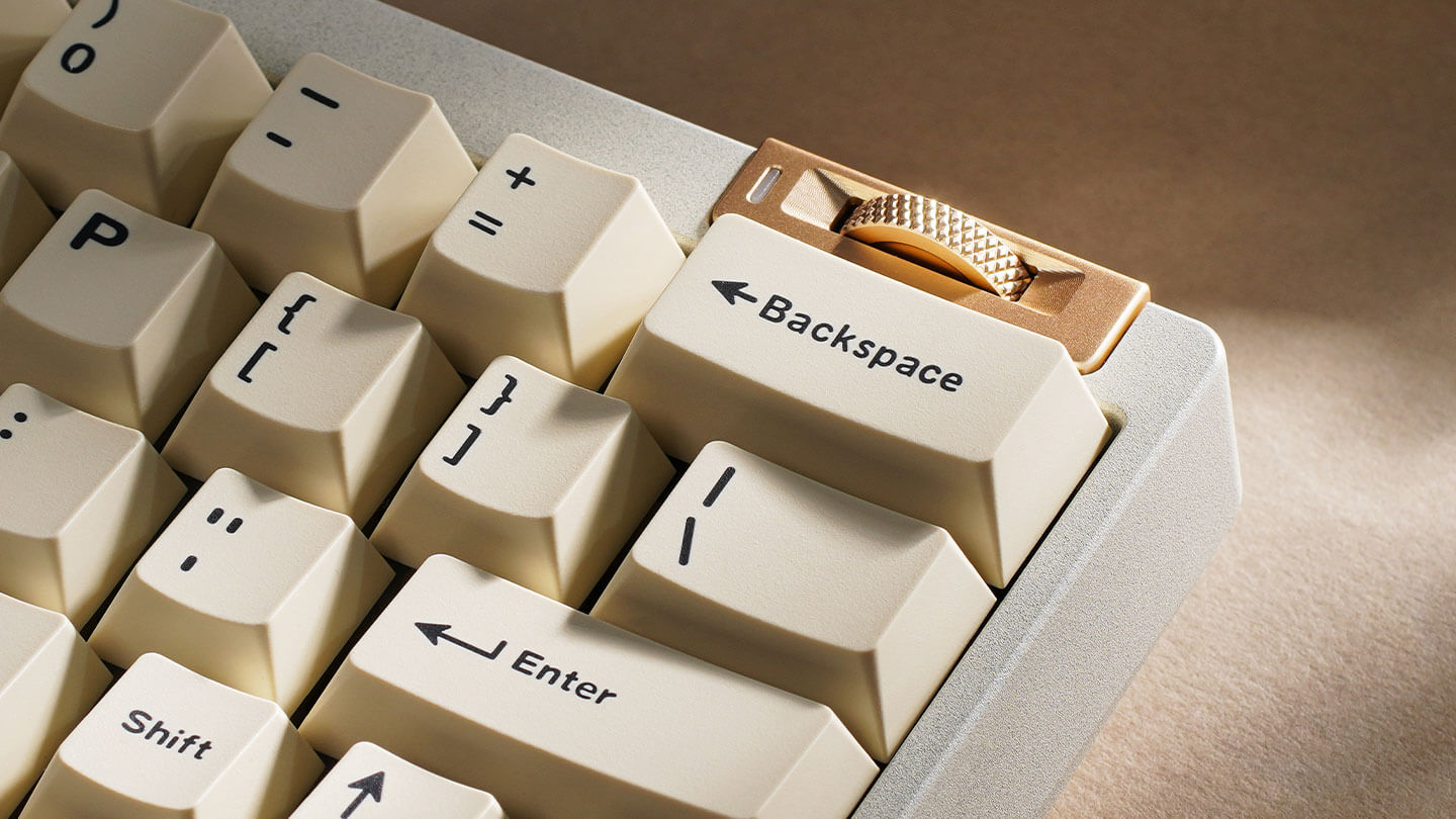Cleverly located just above the backspace key, the sleek horizontal knob offers superb tactile feedback and precise control. Programmable via VIA, it transforms into a volume dial, scroll wheel, or any macro tool you define.