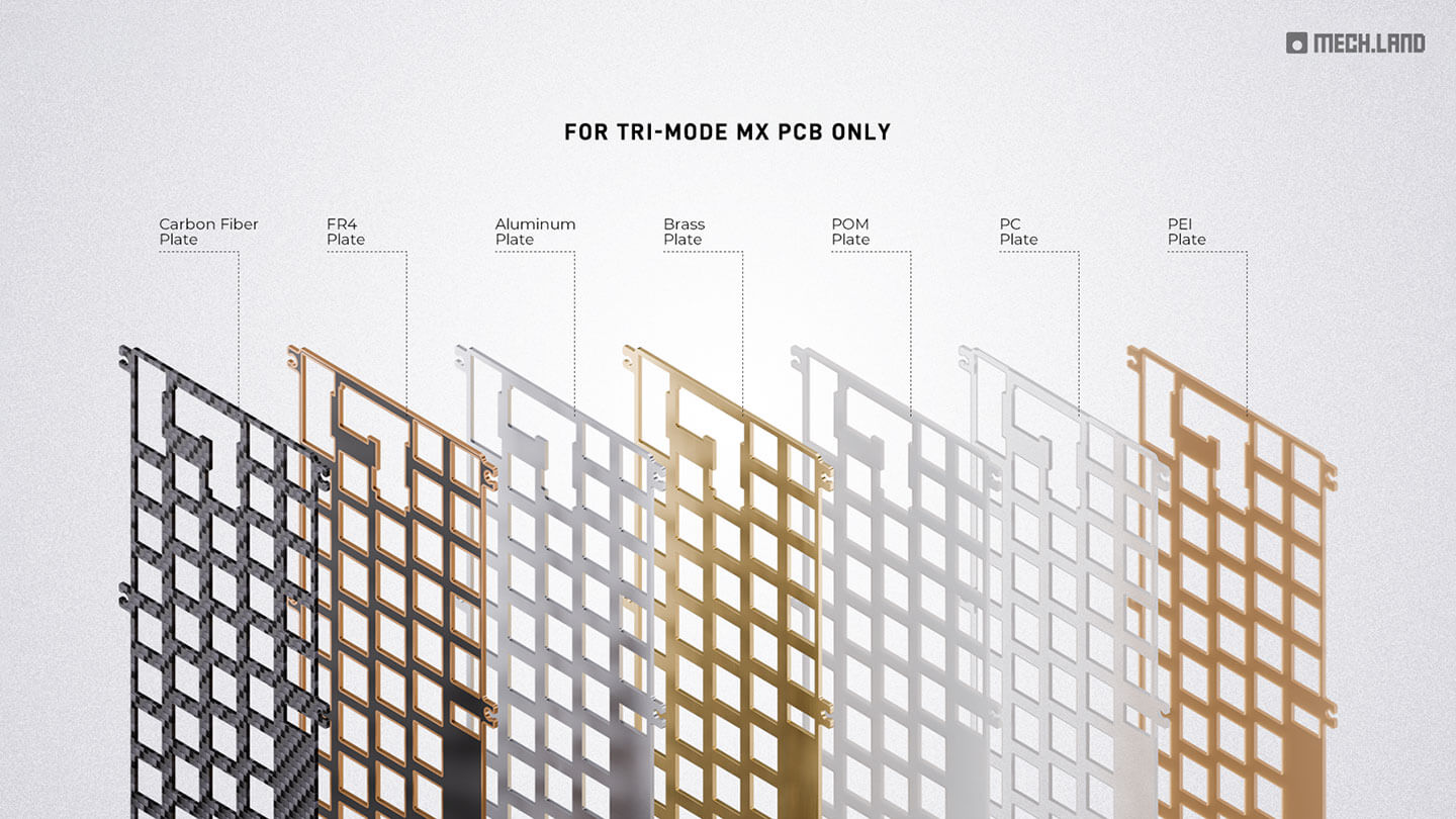 You can choose either an Aluminum, FR4, POM or PC plate with each Barebones Kit. Additional plates, including plates made of other materials can be purchased separately.