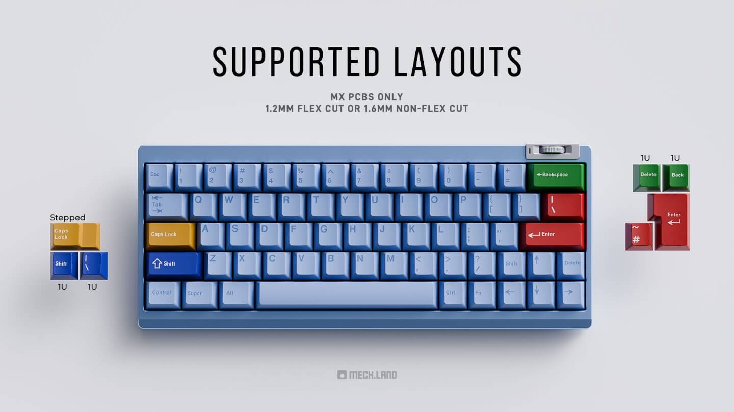 -Both MX PCBs and Flux60 HE PCB use a non-standard, but popular 2u left shift. Please make sure your keycap set has this key.