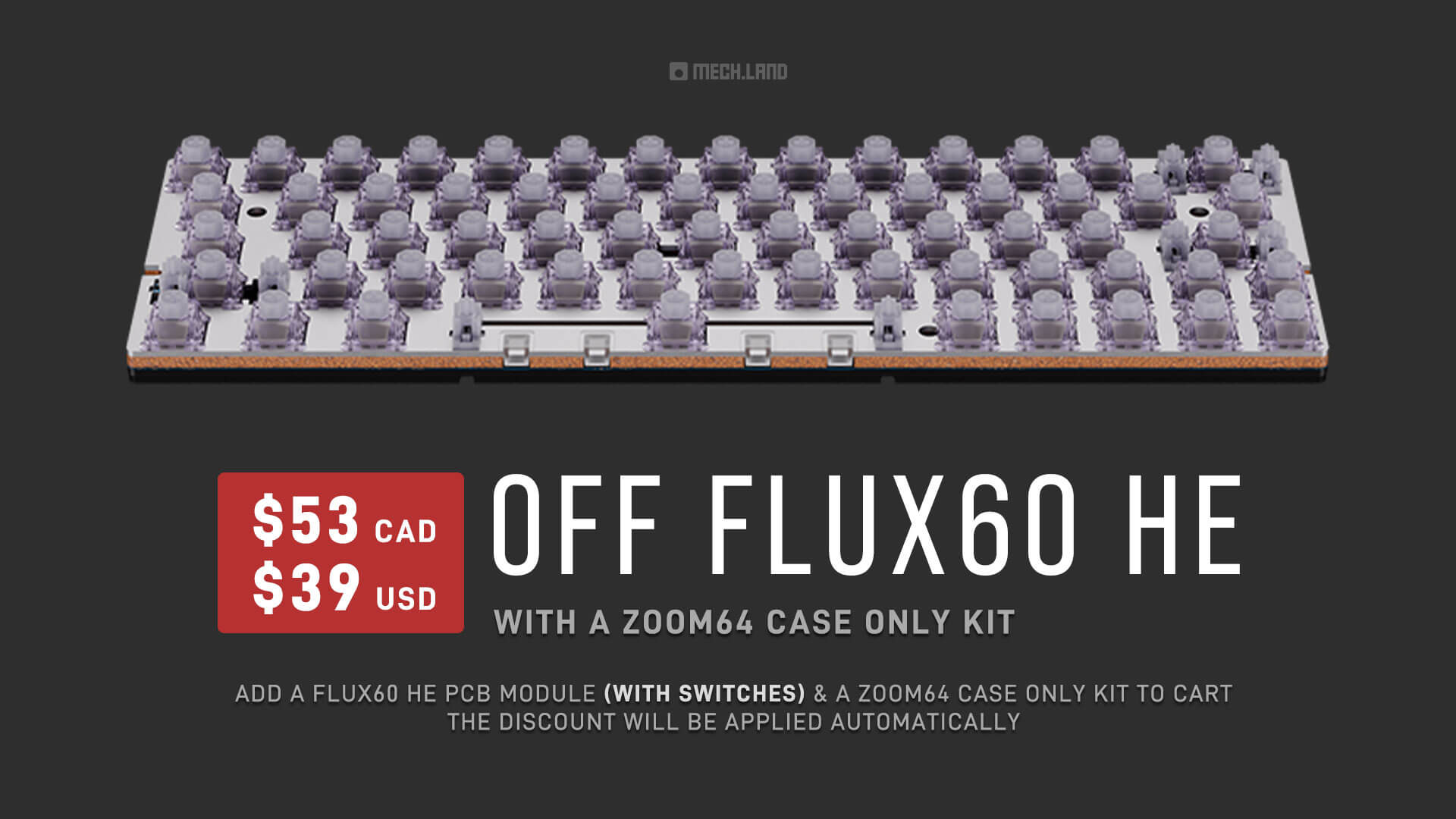 -You can bundle a Zoom64 Case Only Kit with a Flux60 HE PCB module to create a 64-key Magnetic HE Zoom64. You can use the Flux60 HE PCB module with the Barebones Kit too for a second, HE setup.