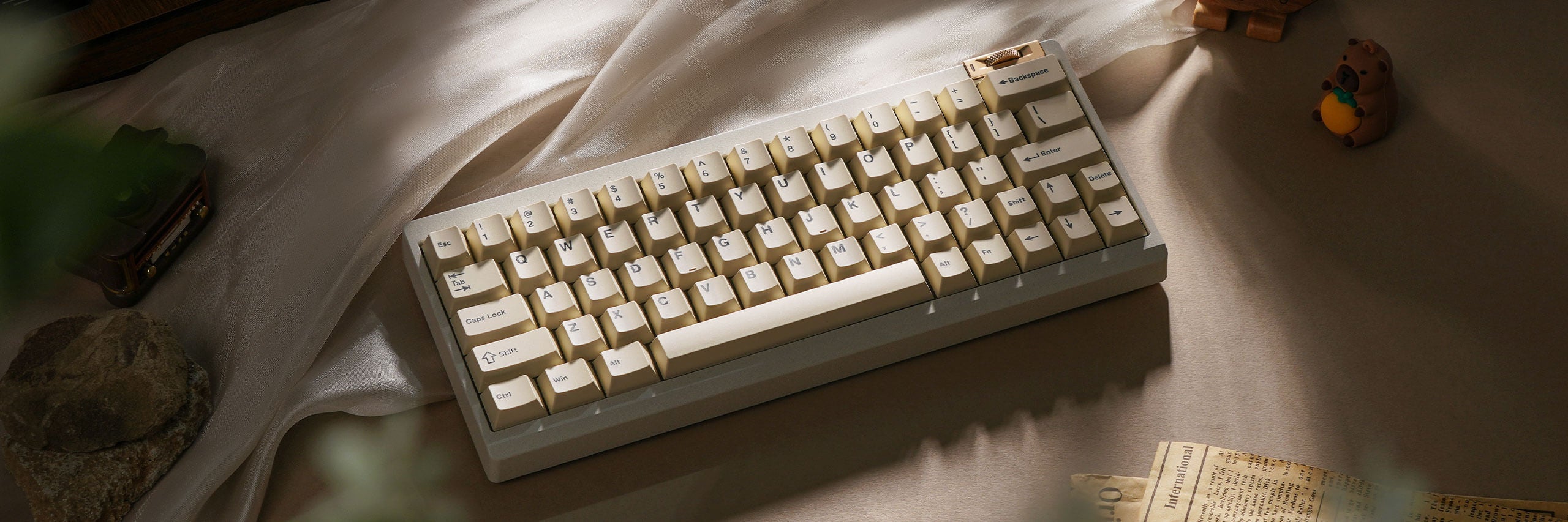 Cleverly located just above the backspace key, the sleek horizontal knob offers superb tactile feedback and precise control. Programmable via VIA, it transforms into a volume dial, scroll wheel, or any macro tool you define.