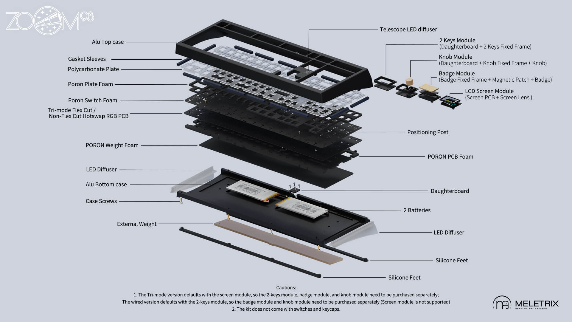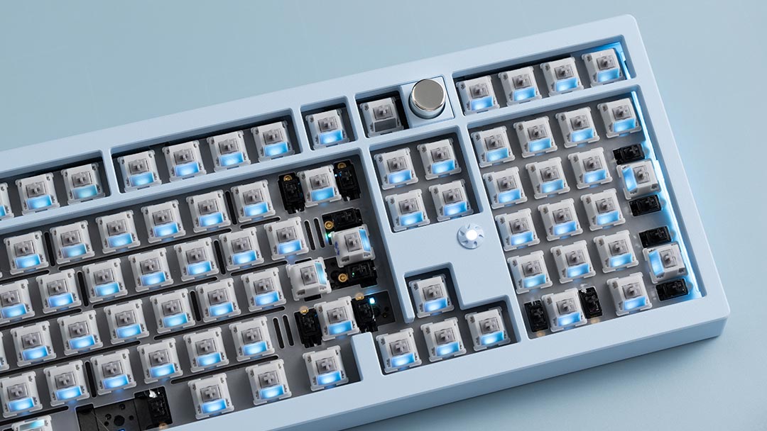 - Tri-mode PCB with hot-swap sockets, multi-layout, VIA & per-key RGB support, with or without flexcuts